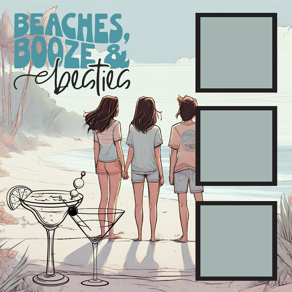 Beaches, Booze and Besties Premade Scrapbook Page 12x12